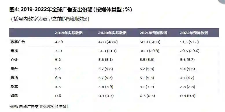 我这里有两张来自dentsu广告全球支出预算数据,我们可以看出,这数字广告全球支出费用的增长速度,反面衬托出来的各行各业投入力度,未来只会更强。