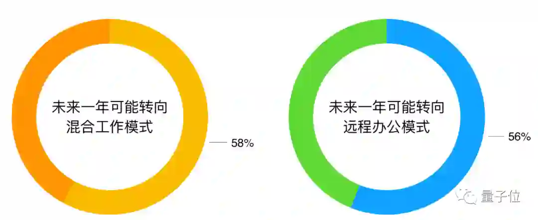 他们之中,有58%的人考虑在未来一年转向混合工作模式,56%的人打算选择远程办公。