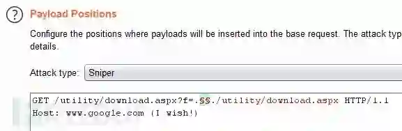 这里我手动枚举了字符,直到我发现.+./utility/download.aspx可以返回download.aspx的内容。这就非常棒了,因为我可以遍历目录了。原因是什么我也不清楚,但是我在我自己的ASP.NET应用中测试了一下,结果是无效的,所以应该是这里存在有安全漏洞。