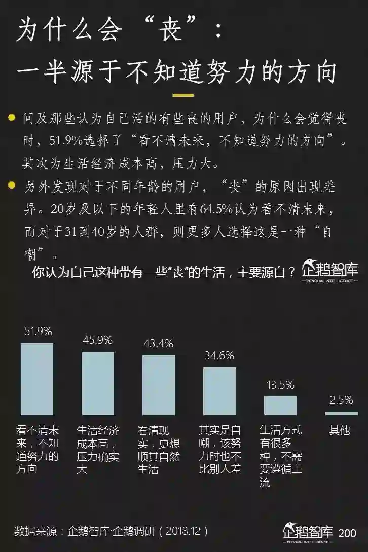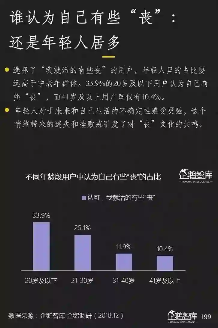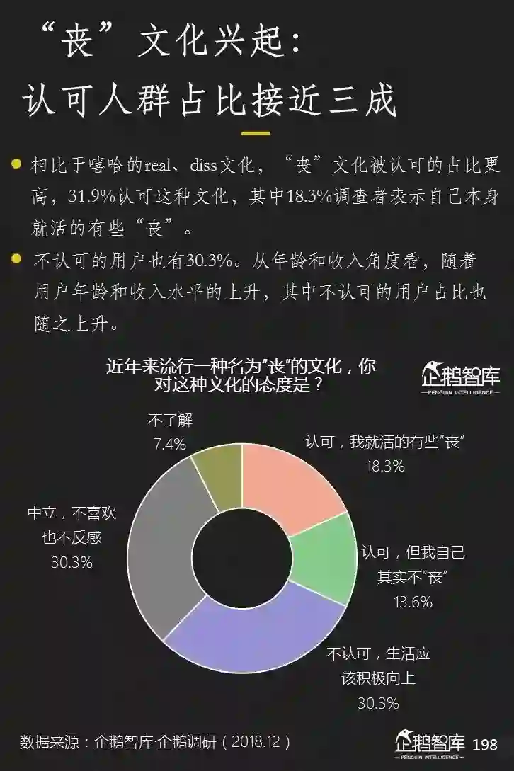 相比于其他文化分流,丧文化并没有规模上的突出优势。但我们还是希望用一个单独的小章节去探讨它。