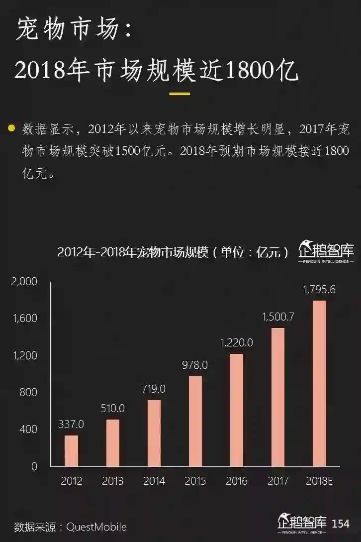 在中国,城镇养宠人群突破7000万,而整个市场规模在2018年接近1800亿元。但这可能只是一个开始。