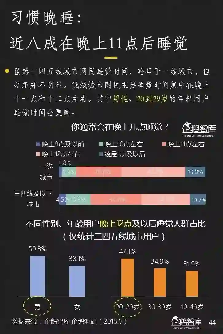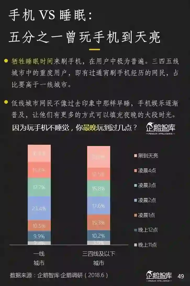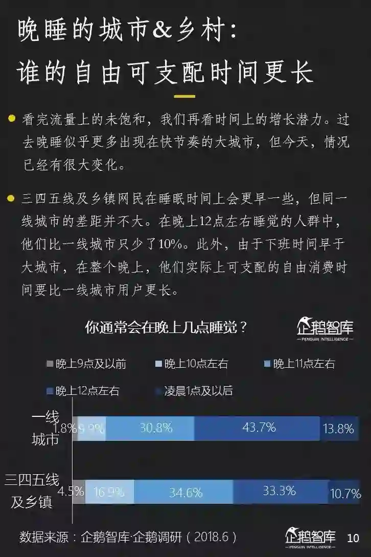 看完流量上的未饱和,我们再看时间上的增长潜力。过去晚睡似乎更多出现在快节奏的大城市,但今天,情况似乎已经有很大的变化。