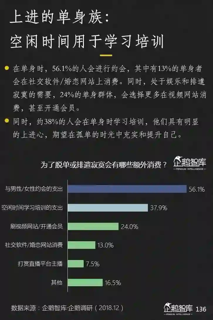 他们中很多人,会为了“ 更好的自己”而投资,以及,为了消除单身的孤单感而消费。