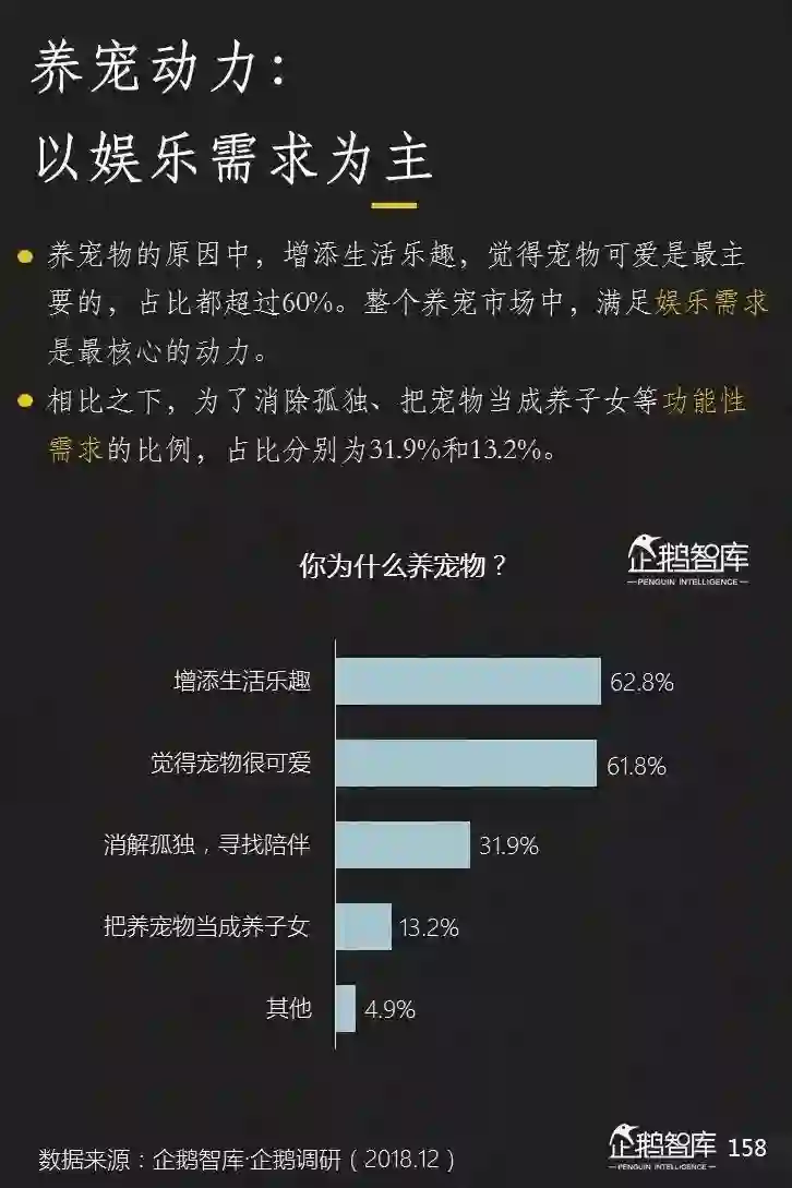 我们看到年轻人在养宠热情上已经超过成年人,随着互联网上宠物文化的进一步流行,未来,整个中国城镇网民中,养宠的比例有望进一步增长。