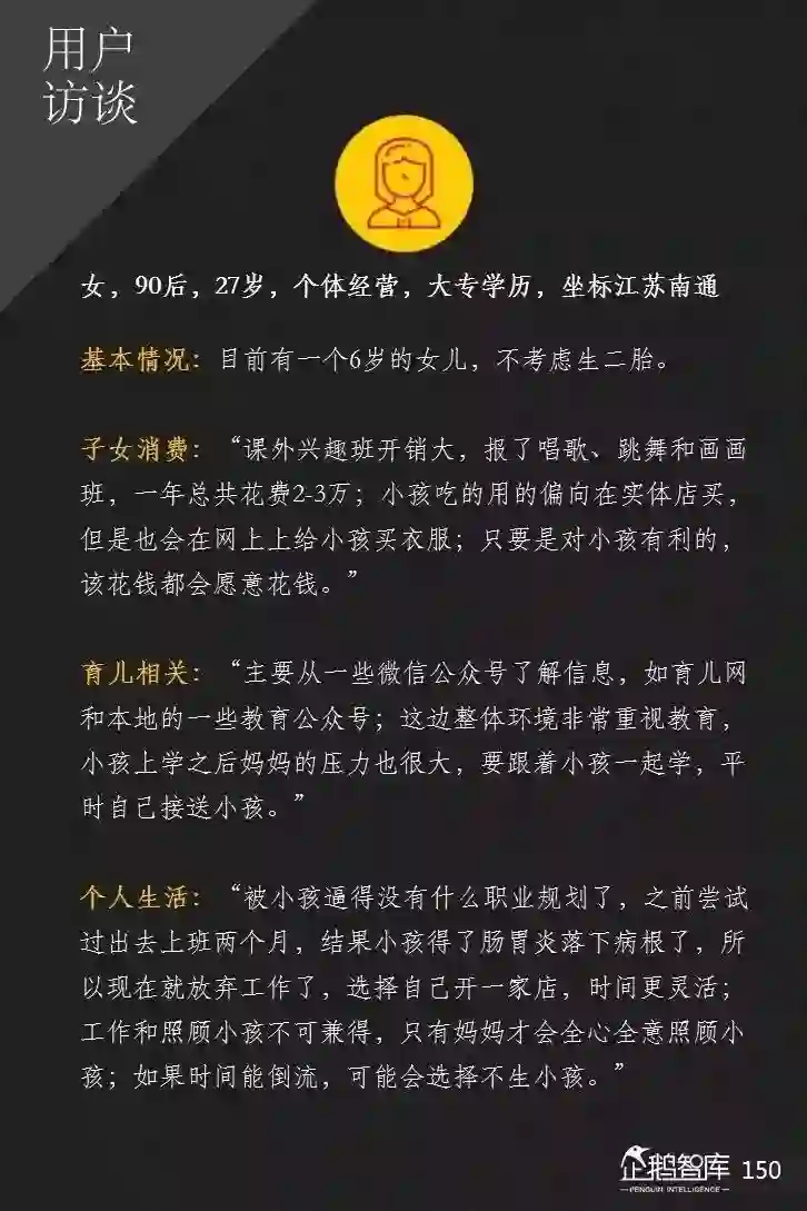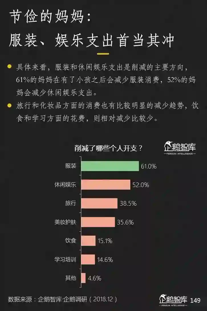 在消费方面,她们开始有计划的减少个人花销,这在服装和娱乐上尤为显著。同时,她们开始在孩子身上增加投资,并更习惯于从手机上获取最新的育儿和教育信息。来和孩子一起成长。