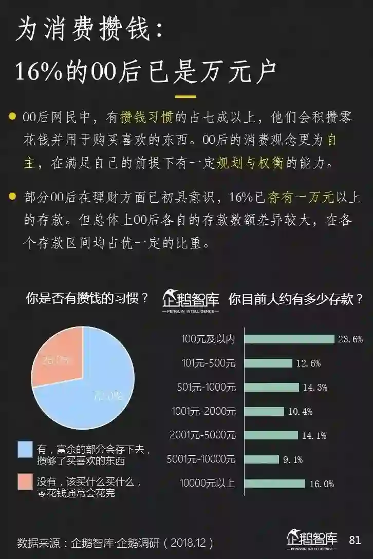 他们还会因此而提前开启了存款和理财的行为,攒钱买心爱之物,成为00后心中的一个执念。