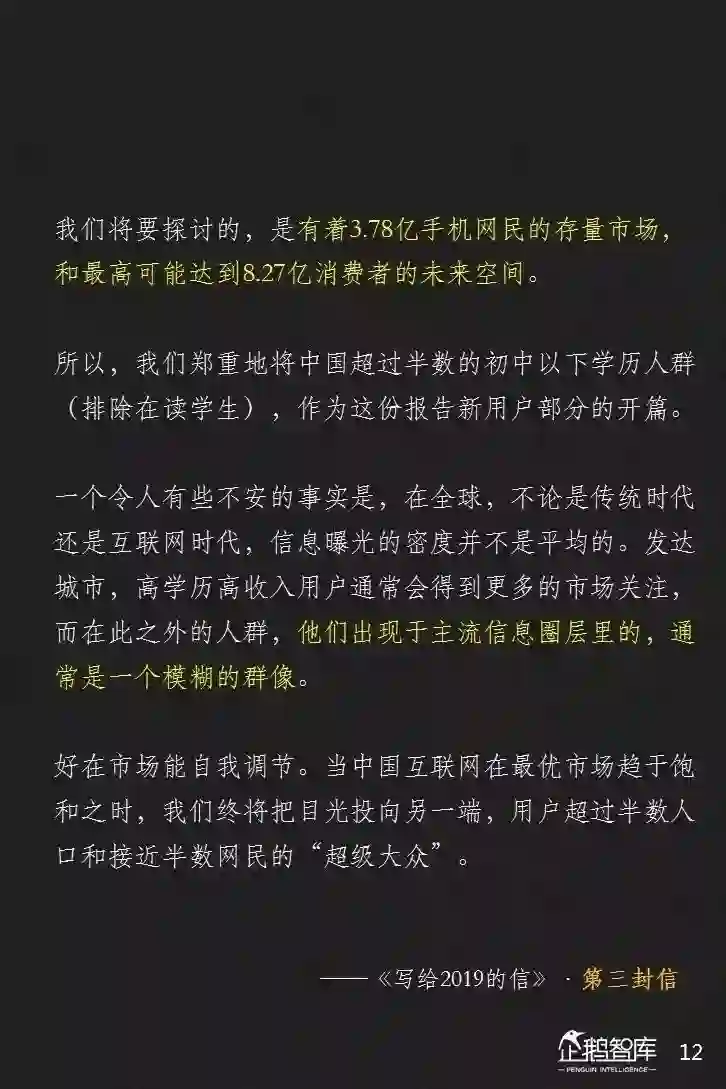 所以,我们郑重地将中国超过半数的初中以下学历人群,作为这份报告新用户部分的开篇。