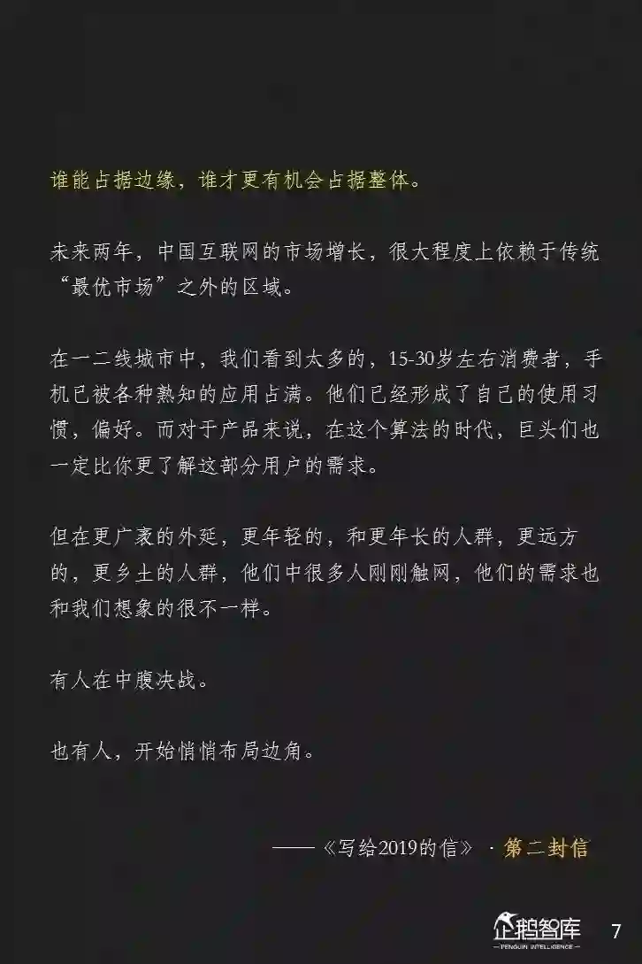 当经济增长面临更多的复杂性,行业红利和人口红利已经告别野蛮生长时,我们也许,比中国互联网历程中的任何时刻,都更需要了解我们的用户,特别是那些远方的用户。我们需要重新认识他们。因为我们从未真正认识,那个完整意义上的“他们”。