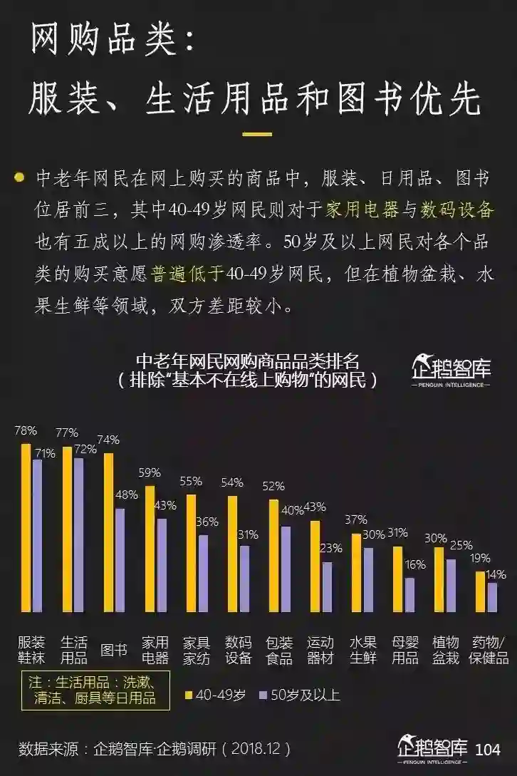 是的,电商已经完成了对中老年网民的第一次覆盖。在4050岁人群中,约89%的网民,有电商网站购物的经历;而在50岁以上的网民中,网购的渗透率也达到了68%。