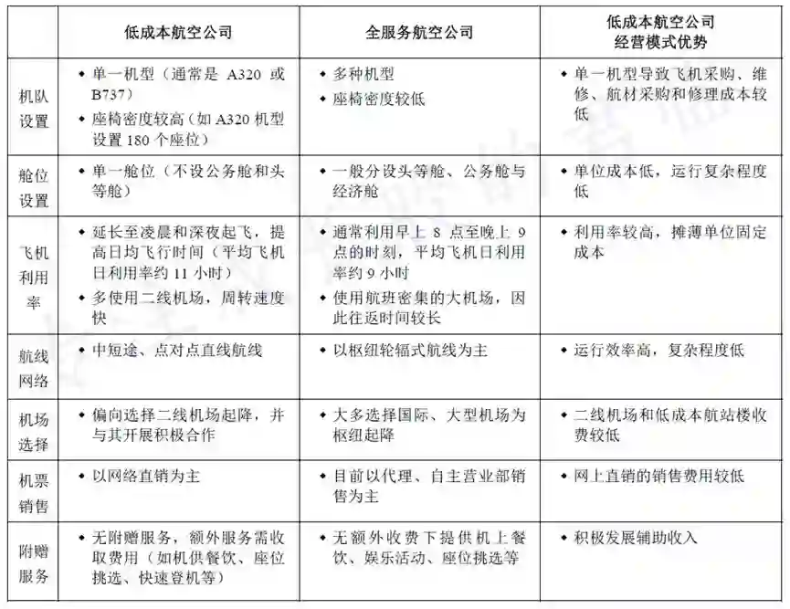 看看春秋招股书中对不同业务模式航司的比较: