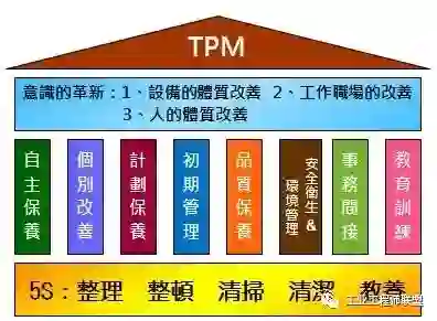 以全员参与的方式,创建设计优良的设备系统,提高现有设备的利用率,实现安全性和高质量,防止故障发生,从而使企业达到降低成本和全面生产效率的提高。不仅体现5S,更重要工作安全分析,安全生产管理。