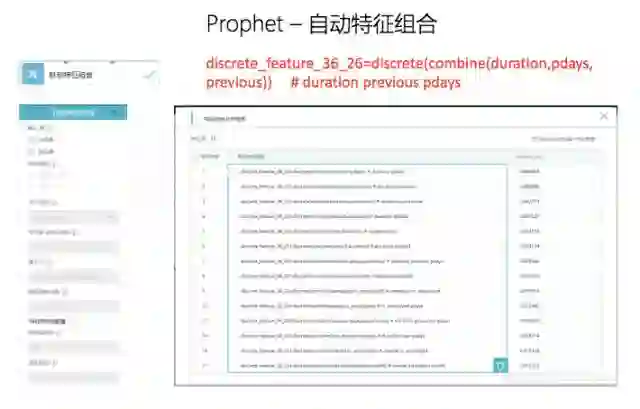 实际上,数据当中还有多少组合,数据科学家不一定能够轻易判断出来。所以先知具备自动特征组合的探索功能,在一个非常广的空间里面,通过本质上是一个暴力搜索的方式进行探索。实际上由于计算代价很高,纯粹的暴力搜索是做不到的。我们通过一些算法,将它降到一个正常情况下可以接受的时间内,且能做到5阶甚至6阶的有效特征,这个其实可以大大减少科学家的工作量,以及对数据理解的时间。