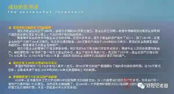 我今天演讲的题目是《复利是最可靠的财富增长方式》,资本市场有很多的财富故事,我们对其中的一些故事特别感兴趣:诺贝尔基金;伊利诺伊州的老妇人;美国一对普通的大学教授的三个投资故事。这是投资的最高境界。