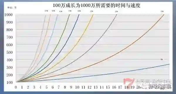 放眼财富天空。这张图向我们展示了100万是如何成长为1000万元。 100万,每年30%,10年13.6倍,就是1360万;30年后是26亿。