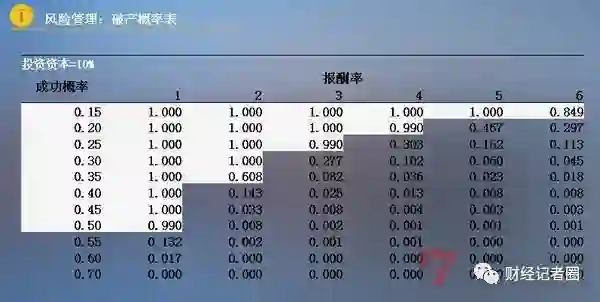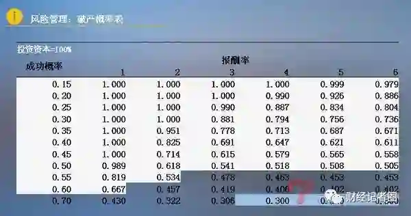 这张图,我相信大家非常的陌生,我们称之为破产概率表。
