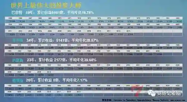 大家不难发现,这几位投资大师的年化收益和之前几位普通投资者基本都在20%-30%附近,而时间的累计成为他们财富增长的重要函数。所以我们说,成功的财富故事都是相同的。