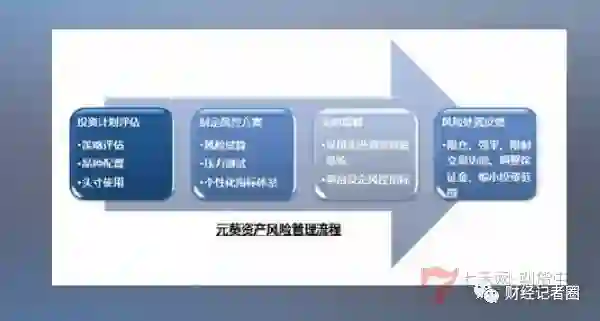 这张图向大家展示的是元葵的风险管理流程,这是直接从我们风险管理制度中截图出来。元葵的风控特点是执行至上,错的也是对的。其次是风险预算制度,风险管理不仅全程参与各个环节,而且前置到计划、产品和方案。