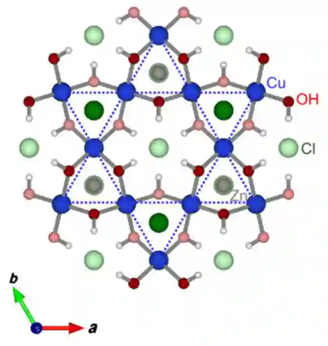 图2. Kagome 格子锌铜羟基卤化物晶体结构示意图 [图片来源:Phys. Rev. X 6, 041007 (2016)]。