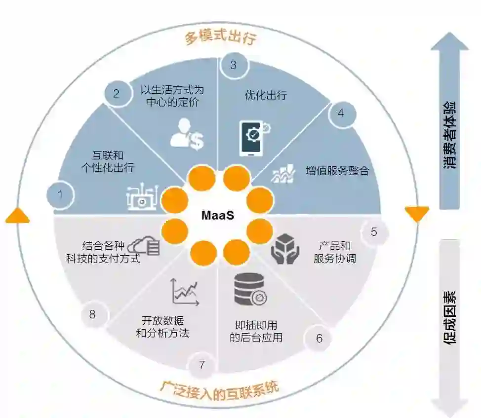 MaaS 是交通出行生态系统所有参与者的重要机遇。社会和人口的趋势,以及各种出行应用的流行,展示了消费者对MaaS 的需求。而消费者也将通过自己的选择决定哪一款服务将最终取得成功。出行服务运营商将利用MaaS 识别新的市场机遇。