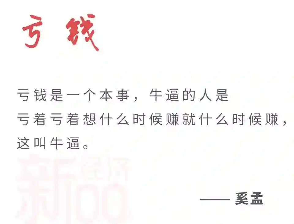 奚孟做好了前期亏损的准备,「我觉得亏钱是一个本事,牛逼的人是亏着亏着想什么时候赚就什么时候赚,这叫牛逼。」
