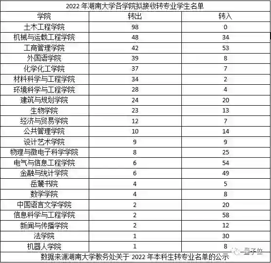 前不久,湖南大学公示了2022年本科生转专业的一份名单。