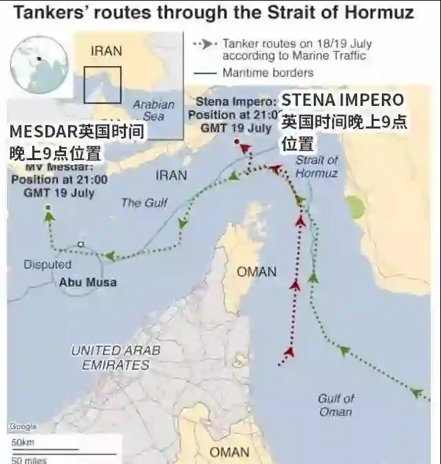 据外媒报道,伊朗周五(19日)在霍尔木兹海峡扣押了两艘油轮,一艘悬挂英国国旗的油轮“Stena Impero”,一艘悬挂利比里亚国旗但由英国运营的油轮“Mesdar”。目前,“Mesdar”已经获准继续航行,但“Stena Impero”还未能与外界取得联系,所属公司表示暂未收到人员伤亡报告。伊朗伊斯兰革命卫队表示,扣押“Stena Impero”的理由是该油轮“违法国际规则”。