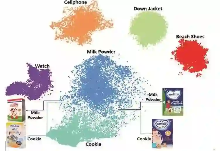 由图3可见,虽然整个Telepath网络并非用商品类目信息来训练,但仍然能够非常好地区分不同的商品。这符合我们的预期,也符合常理,因为卷积网络对相似的输入必然产生相似的输出。