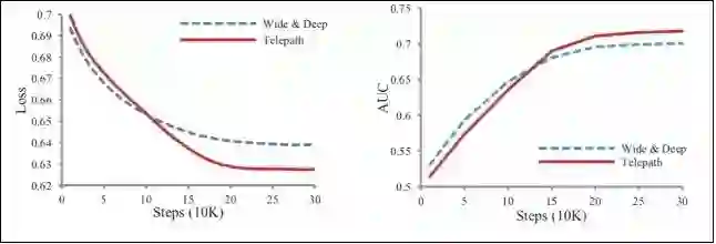 从图中可见,Telepath的Loss和AUC比起Wide & Deep网络都有一定改善。