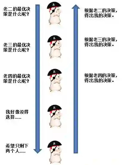 如何利用递归思想来简化问题呢?让我们来详细分析一下,后文把五个海盗简称为老一、老二、老三、老四、老五。
