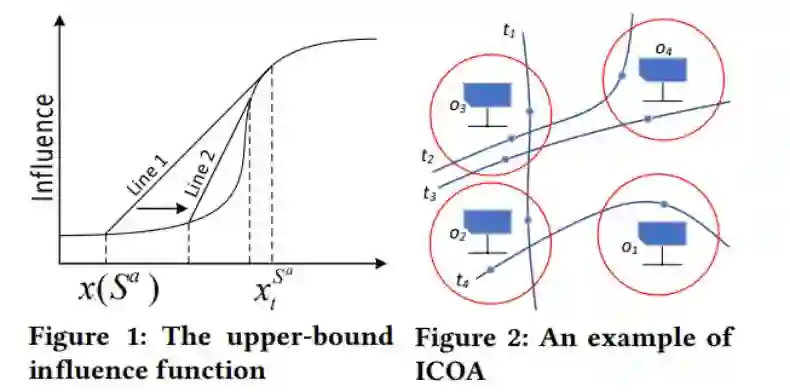 给定一个广告牌数据库 U,其中每个广告牌都有一个位置和一个非均匀成本,一个轨迹数据库 T 和一个预算 B,它的目标是找到一组在预算范围内影响最大的广告牌。