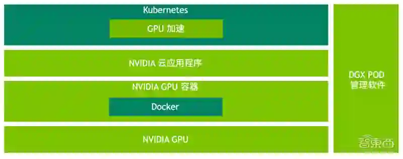 除了设计优化的 DGX 服务器、存储服务器和网络交换机组合 ,DGX POD 上还运行一整套适配的 NVIDIA AI 软件堆栈,极大简化 DGX POD 的日常操作与维护,为大规模多用户 AI 软件开发团队提供高性能的深度学习训练环境。