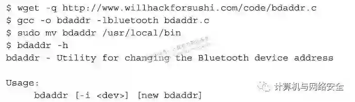 标准Linux操作系统上,并没有能够冒充“蓝牙设备地址”功能的工具。而要完成这种攻击,就得从第三方工具中查找,比如,我们可以使用bdaddr工具。bdaddr程序是由Marcel Holtmann编写的,这个人也是Linux操作系统上BlueZ程序的作者。目前这个程序已被作者多次修改,解决了软件中的多个bug。如果要手工下载和从源代码的级别上创建应用程序,其步骤显示如下。