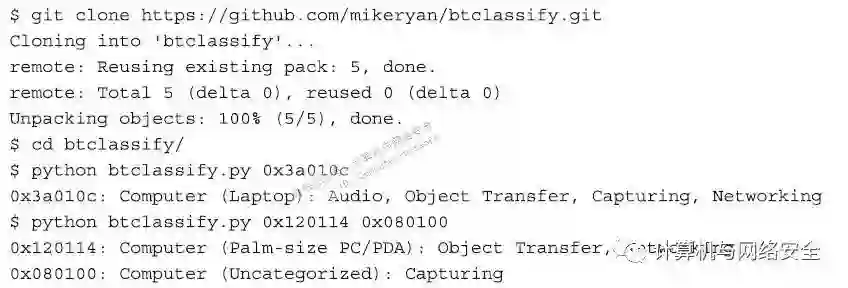 我们可以通过使用btclassify工具自动对类型信息进行解码,该程序由Mike Ryan编写。该命令的使用格式如下所示: