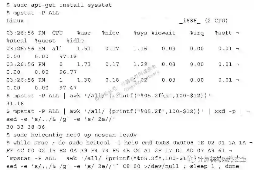 还可以从“低功耗蓝牙”通告数据包中看到改变CPU级别数字的改变,不过,这需要在相同的系统上,通过在一个新的终端窗口中运行“hcidump-X”命令实现的。