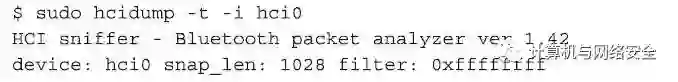 对于一个给定的目标,创建一个到远程系统的连接,就可以通过“主机控制接口协议”层的嗅探工具hcidump命令查看一个连接状态。hcidump工具通常是一个对Linux操作系统发行单独的工具包,但是,它也是Linux操作系统上BlueZ开发包的一个组件。在基于Debian的系统中,可以安装hcidump工具,其命令格式如下所示: