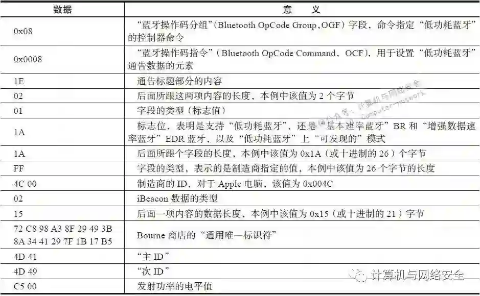 表2“低功耗蓝牙”通告数据的字段分解意义