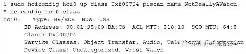 蓝牙设备采用多种身份机制向外界传达本设备的各项信息,比如“设备功能”(capability)、“服务分类”(service classification)、“设备地址”(address)以及“友好名称”(friendly name)。根据想要攻击设备所处的目标环境,可能会发现修改攻击系统的身份对于攻击目标是非常有帮助的。