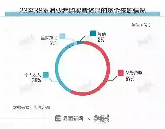 贝恩咨询数据显示,近六成消费者(23至38岁),买奢侈品的钱,是父母资助。