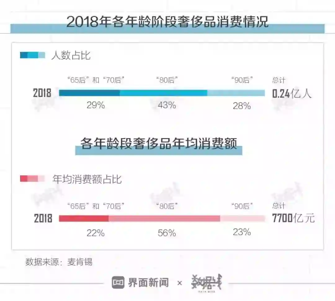 据麦肯锡数据,2018年,共计2390万中国人在为奢侈品消费额“贡献力量”。