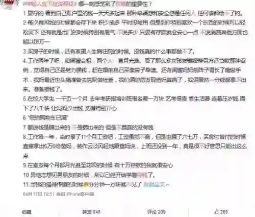 微博网友整理的“存钱重要性”截图。来源:网络