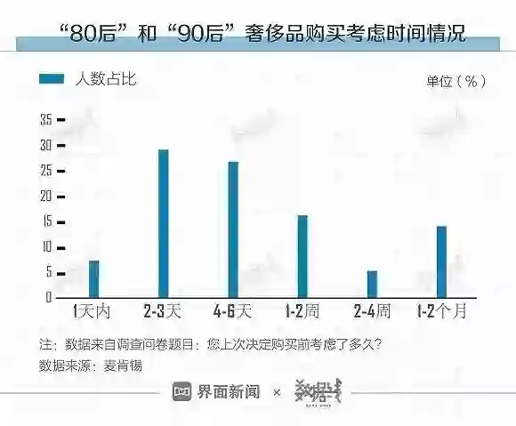 在奢侈品面前,“80后”和“90后”消费理性“迷失”。据麦肯锡数据,约六成购买者1周内可以考虑清楚“买还是不买”问题。