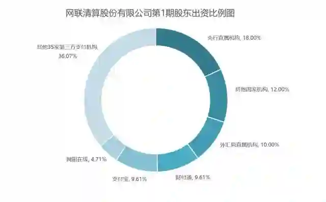 同时,支付宝、财付通两大市场巨头并未能占据主导地位,包括央行清算总中心、上海清算所、黄金交易所等在内的央行下属7家单位共同出资7.6亿占股比例达到37%,央行系成为当之无愧的第一大股东,支付宝和财付通分别持股9.61%。