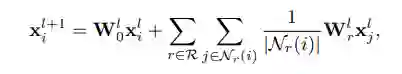 做法与上面类似,提取每个子图后,首先要对其中的节点进行标注(node labeling)。目的是为了区分子图中节点的不同角色。比如要区分目标节点(target user/item)和背景节点 (context nodes)。目标节点标示出到底要预测子图中哪一对(user, item)之间的评分。同时,可以区分不同阶的邻居节点,比如一阶邻居(1-hop neighbors)和二阶邻居(2-hop neighbors)对目标节点的贡献程度并不相同。对目标用户(target user),标注为0,对目标商品(target item),标注为1;对i-hop的背景用户标注为2i,对i-hop的背景商品标注为2i+1。之后,将这些标注转化为one-hot encoding vector,作为每个节点的初始特征输入给图神经网络。在图神经网络(GNN)中,结合relational graph convolutional operator (R-GCN)作为卷积层,进行学习。