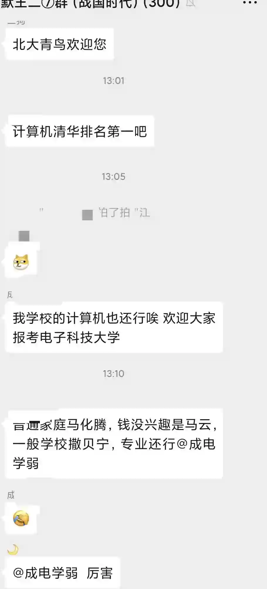不得不炫耀一下,我的读者群里都属于卧虎藏龙的人才啊,电子科技大学的敢说自己学校的计算机还行唉,注意用词,还行(全国排名第十一),必须手动狗头一下。瞬间感觉自己也挺牛逼的,我一个大专毕业的,写出来的文章竟然吸引到了很多名牌大学的目光,必须给自己点个赞。