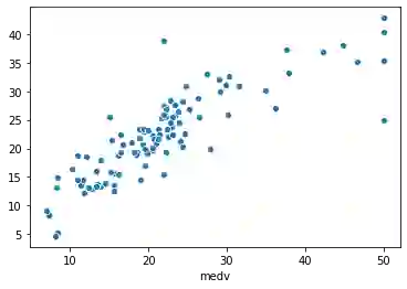 图13. 测试集的实际medv值与预测medv值(20%子集)的散点图。