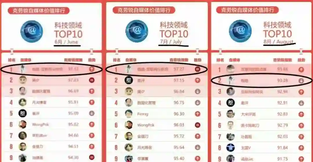 科技自媒体价值排行榜位列榜首