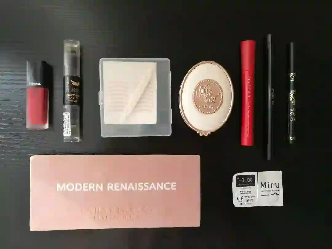 口红、腮红、眉毛、眼线、睫毛、眼影、美瞳