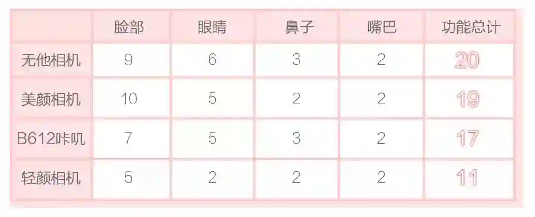 超妹细数了一遍各大美颜APP的功能数量