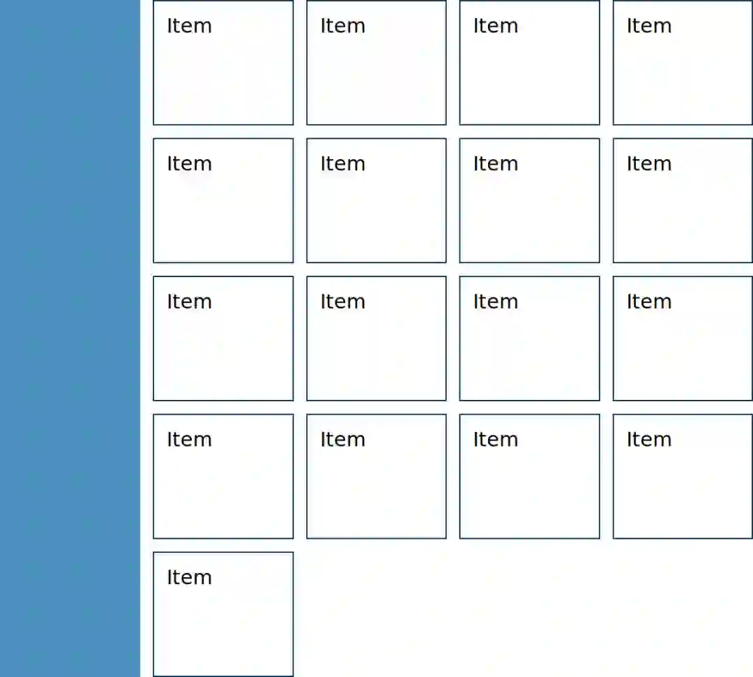 如果你把重复部分都做成具有隐式行列的子网格,则所有这些行都会适应同一个父级网格区域,而不会在父级上创建更多行。这意味着无论在子网格中添加了多少项目,你都可以拥有完全显式的父网格并知道结束线的确切位置。