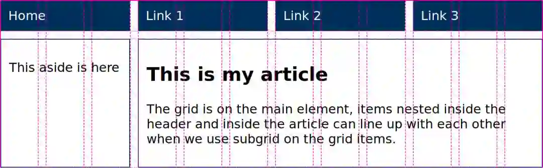 详细的功能介绍和代码示例可以参阅 MDN 上的子网格指南: https://developer.mozilla.org/en-US/docs/Web/CSS/CSS_Grid_layout/Subgrid